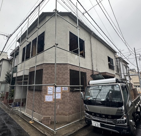 母屋・アパートの2棟、計72坪を施工させて頂きました。重機を敷地にいれる場所が無かった為、道路使用許可の通行止を申請し、ご近隣様30件程ご挨拶まわりをさせて頂きご近所様からもご協力頂ける様に努めて参りました。安全を第一にスムーズに施工できました。