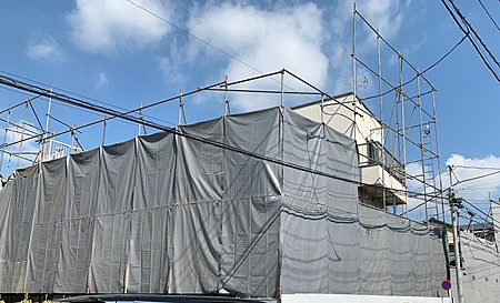 非常に隣接していたので、粉塵対策用の養生足場