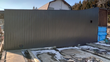 古い牛舎は自宅と繋がっており縁切り処置として壁の修復を行いました。