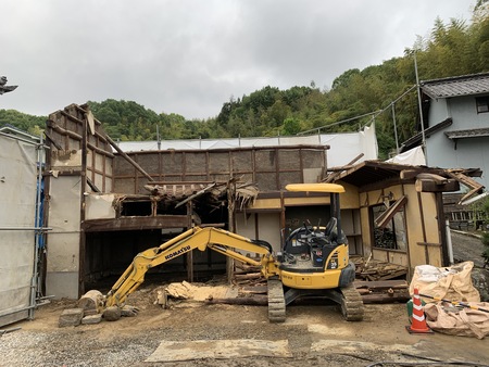 広島県某所 木造2階建です。現場までの道幅が狭く大型の重機が入らないため小さい重機での解体工事実例になります。