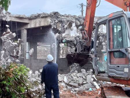 解体工事では、大きな作業音が出てしまったり、建材を粉砕する際に粉じんが舞ってしまって近隣住民の皆さまにはどうしてもご迷惑をおかけしてしまいます。そのご迷惑を少しでもなくせるよう、できるだけ短い工期で、できるだけ影響が出ないよう防音性能の高い養生シートを使用することで騒音や振動を軽減し、振動を抑えるように工夫しながら重機を扱っていきます。
