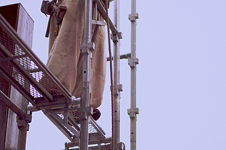工事前に行う事は会議だけではありません。 解体現場にて、交通の妨げや歩行者の安全を確保するための作業を行います。 私達は、現場の中だけではなく、どんなに短期間の工事であっても、周辺の安全を第一に考えます。