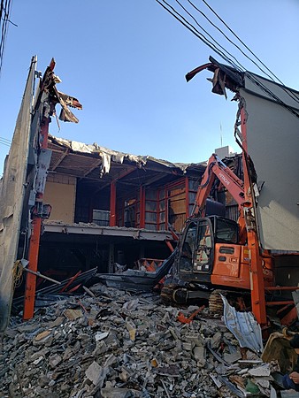 鉄骨造は騒音が大きくなりやすいので、防音シートで覆い、国土交通省で認定されている低騒音型建設機械を使用して騒音及び振動対策に十分注意しながら解体工事を行いました。