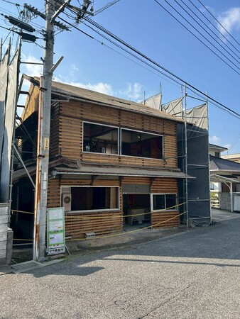 外壁にアスベストが含有しており、解体前に除去作業をおこないました。
