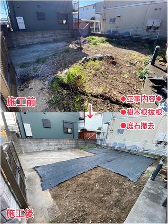 ●不要な樹木根・庭石が無くなりフラットになるだけでかなりスッキリしますね♪