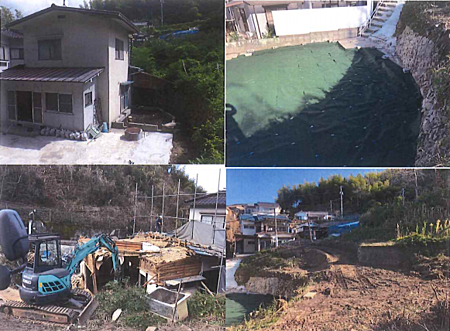 重機と車両が現場内に入れず、隣地の所有者に了解を得て工事車両搬入用の通路を作らせてもらい工事を施工した。