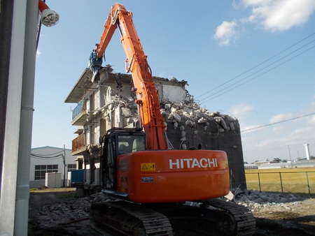 この大きさの建物になりますと、通常の重機では解体出来ないので