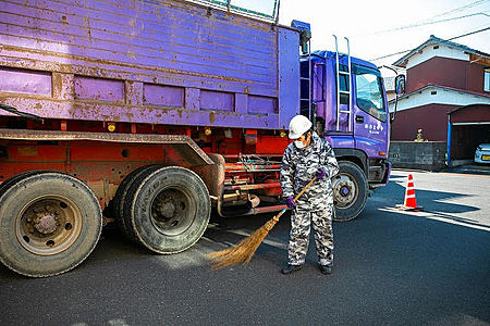 交通量や、人の通行があるためこまめに掃除しながら施工。