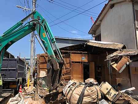 中には家財ゴミも2トン車1台あり、暑かったのもあり、作業難航でした。 老朽化、隣との隣接50センチだったので、緊張しました。 確認しながらいつもの技術で無事終了!