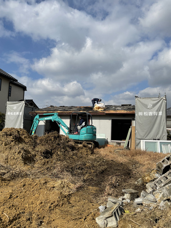 土地が130坪でその中に15坪の家屋があり非常にやりやすく問題の全くない現場でした。庭中草が生えているので、天地返しをして、草の根っこの除去に2日かけ、お施主様が非常に良い方で次の新築建てやすいように金額以上に整地をきっちりさせて頂きました。
