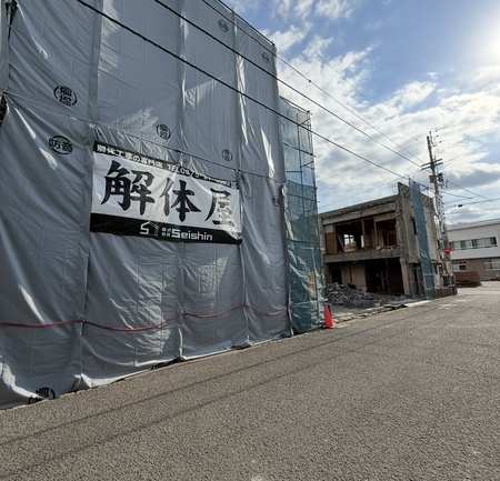 解体現場では、近隣住民の皆様のご協力なしに工事は進みません。できるだけ短い工期で工事を終え、我慢していただく期間を短くするよう努めておりますが、その姿勢をしっかりと周囲の皆様へご説明しておくことが、トラブルを避ける最も重要なプロセスとなります。弊社では工事前に担当者が必ずご近所に出向き、丁寧に工事のご説明をして、ご理解をいただけるように努めます。