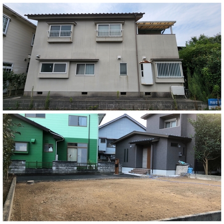 近隣様の住宅との間隔が狭い為、高さのある部分は機械を使わず手作業にて解体させて頂きました。