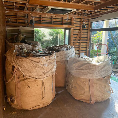 解体工事の際には、たくさんの廃棄物が出ます。この廃棄物を業者である我々が処分するとなると、産業廃棄物として扱われてしまうのでその分費用が掛かってしまうのが厄介です。なので、家具や家電などお客様の方で処分して頂けるものを事前に処分しておいて頂けると、解体工事の費用を抑えることができます。分からない点などがございましたら、お気軽にお問合せ頂ければと思います。