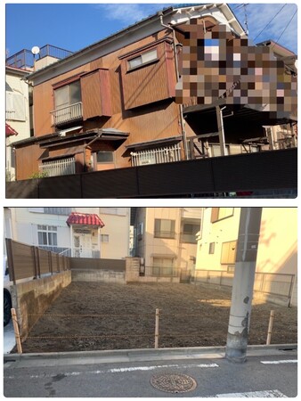 道路の幅が狭く、建物の前に電柱があるため一階部分手壊し。