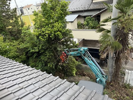 長年放置されて大きく成長してしまった木々やツルなどできる限り抜根を行いスッキリしたお庭にさせていただきました。