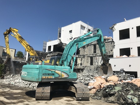 RC5階建施設(500坪)+煙突含有+PCB含有の解体です。
